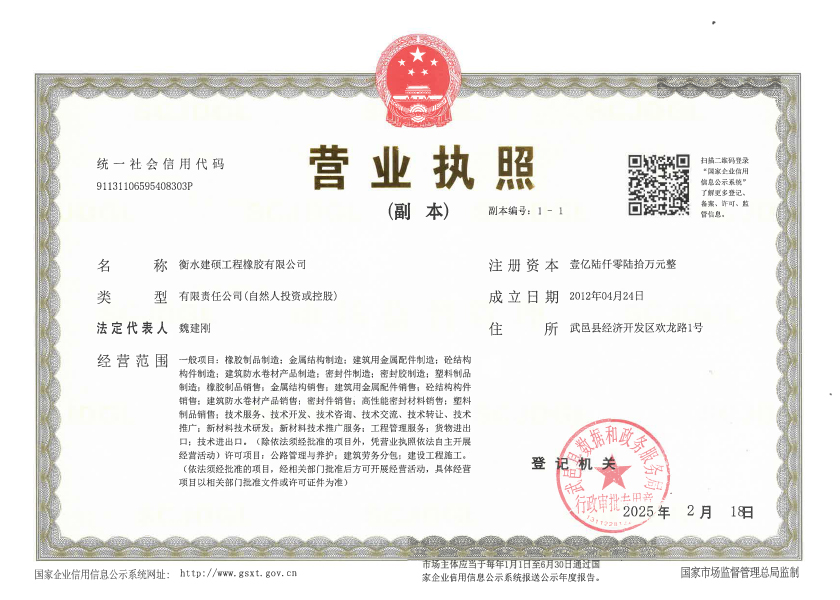 衡水建碩工程橡膠有限公司座落于衡水市濱湖新區(qū),占地面積50000平方米,注冊(cè)資金壹億零捌拾萬(wàn)元整,是生產(chǎn)橡膠支座、盆式支座、充氣芯模、伸縮裝置、止水帶的專業(yè)廠家。公司始建于九十年代,經(jīng)過(guò)近二十年的發(fā)展壯大,現(xiàn)有員工300多人,其中高級(jí)技術(shù)人員45人,高級(jí)技工103人。